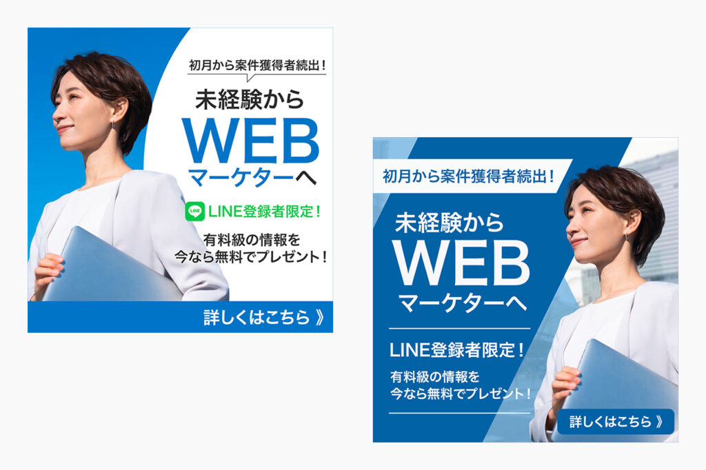 WEBマーケター講座バナー 投稿日: 2024年3月22日2024年3月29日 投稿者: furuzono 制作日 :2024.3.22 前提条件: WEBマーケターを目指す20〜30代の男女向け体験講座の申込 希望配色 青系 希望イメージ 明るく前向き、シンプルで信頼感のある雰囲気